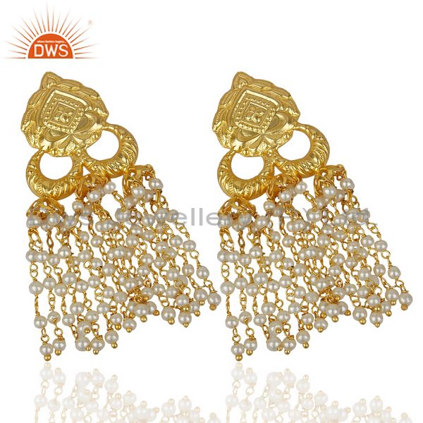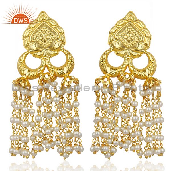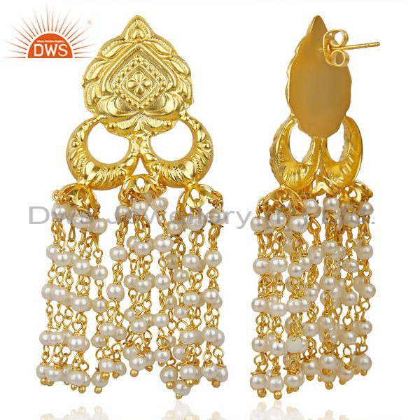 Pearl Chandelier 18K Yellow Gold Plated Brass Fashion Jewellery Earrings