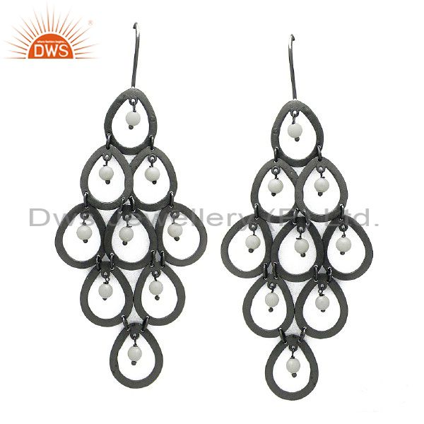 Pearl Chandelier Black Oxidized 925 Sterling Silver Earrings Jewelry