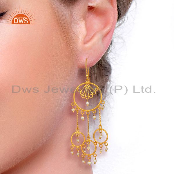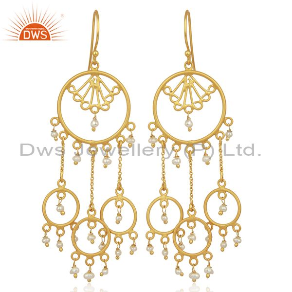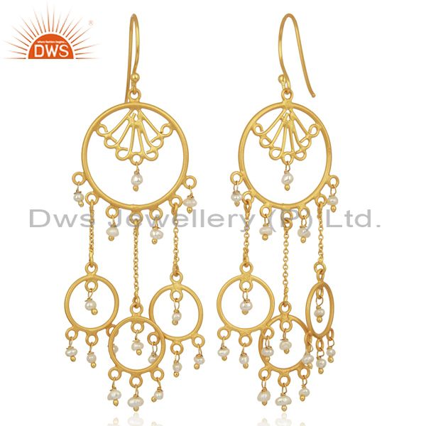 Pearl Circles 925 Sterling Silver 18K Gold Plated Chandelier Long Earrings