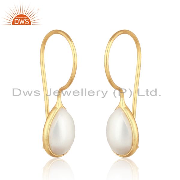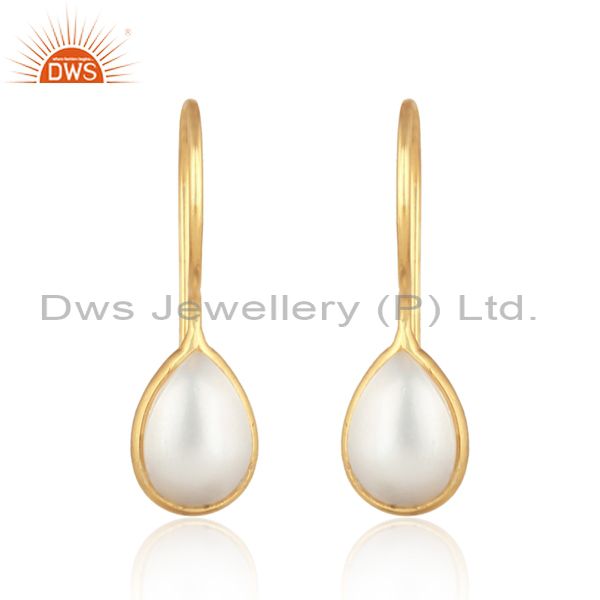 Pearl Drop 14K Yellow Gold On 925 Sterling Silver Earrings Jewelry