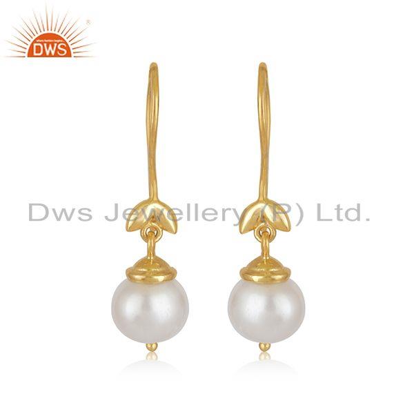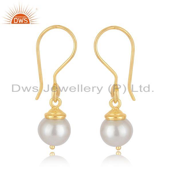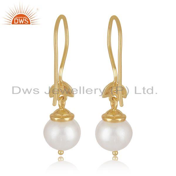 Pearl Gemstone Gold Plated Sterling Silver Designer Earrings