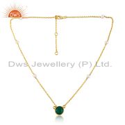 Pearl Green Onyx Gold Plated Designer Silver Chain Drop Earrings