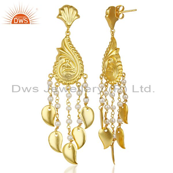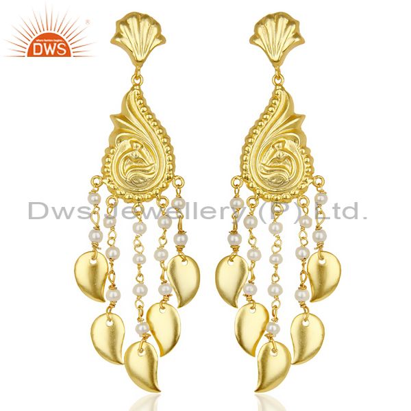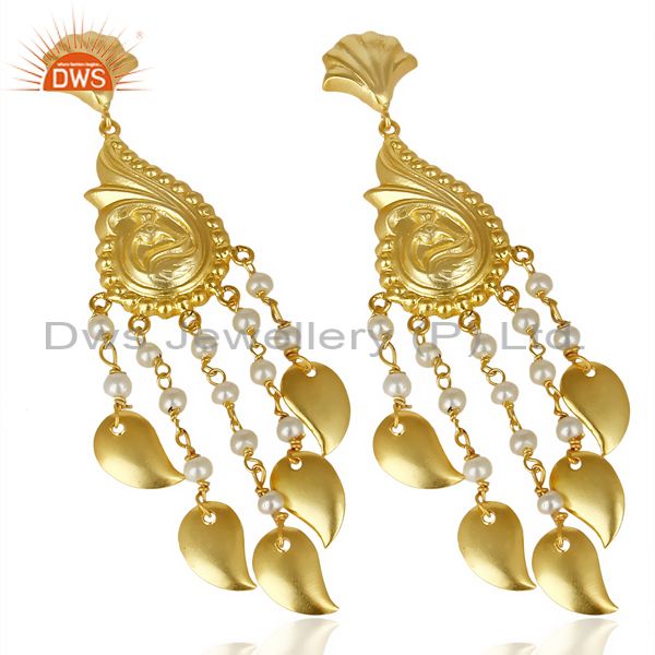 Pearl Handmade 18k Gold Plated Traditional Brass Jewellery Chandelier Earring