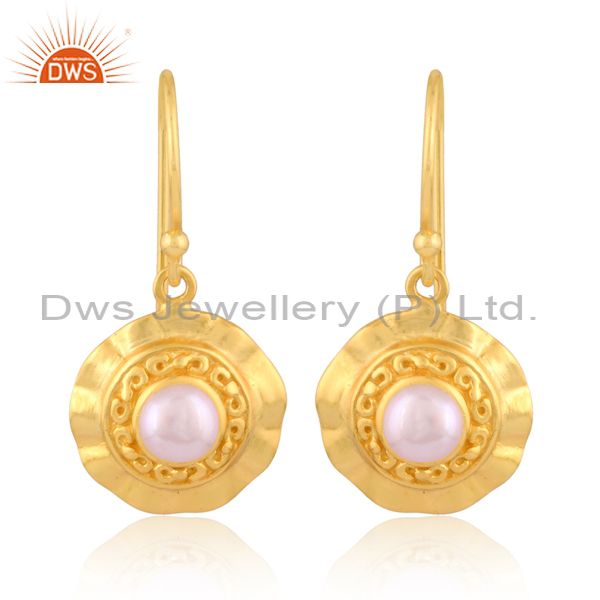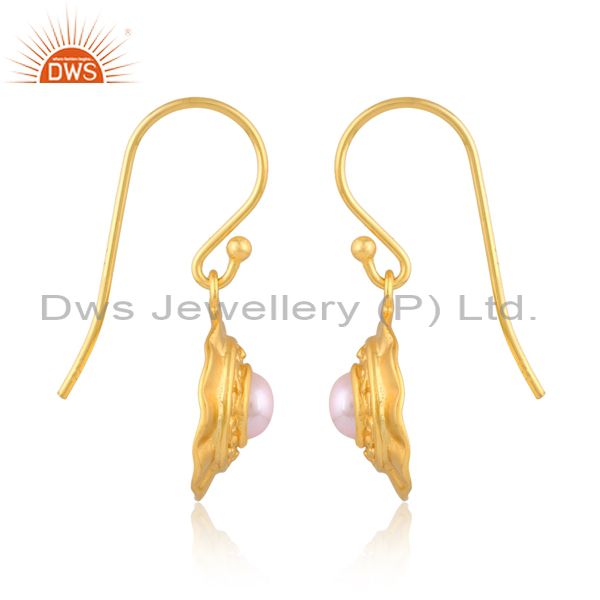 Pearl Set Gold On Sterling Silver Floral Earwire Earrings