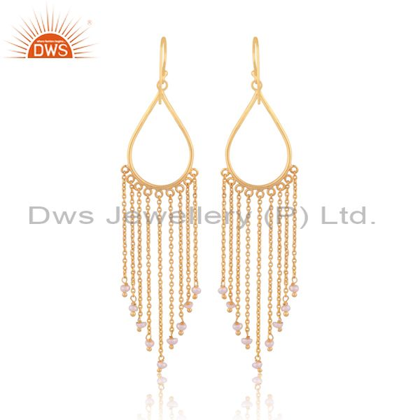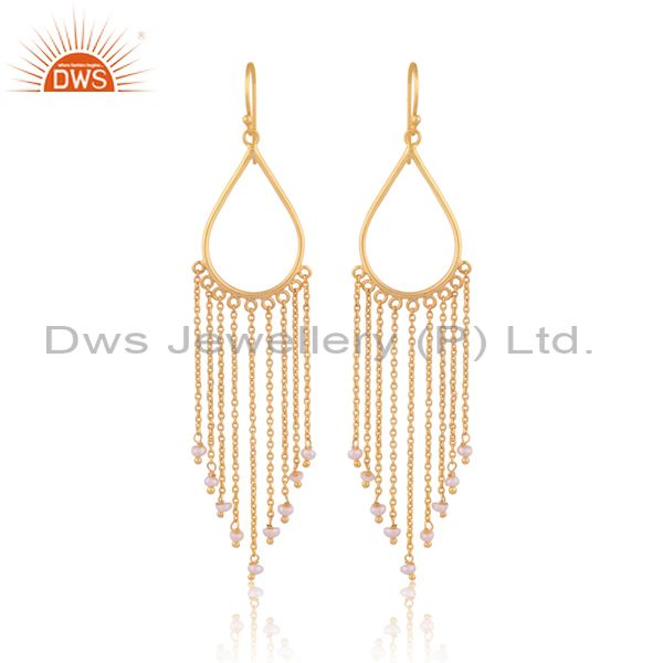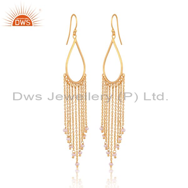 Pearl Set Gold On Sterling Silver Long Drop Ethnic Earrings