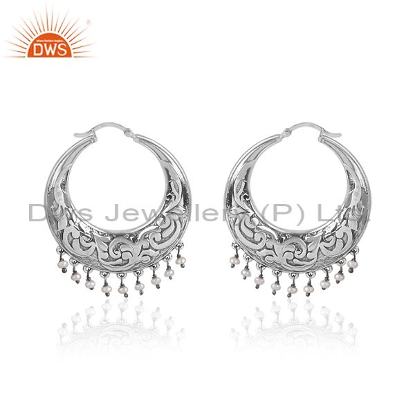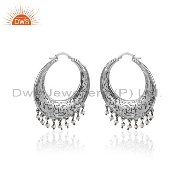 Pearl Set Oxidized 925 Silver Round Designer Ethnic Earrings