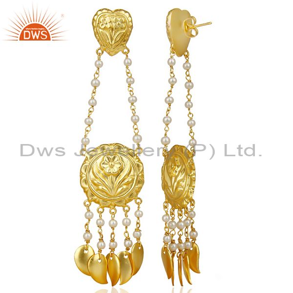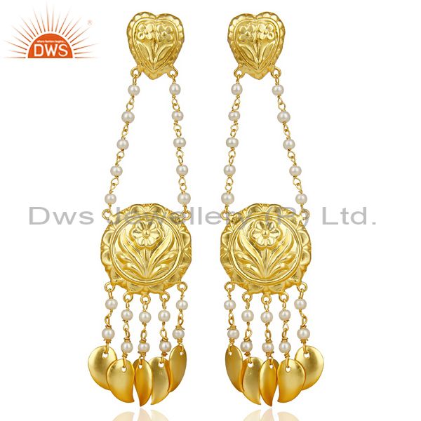 Pearl Strings 18k Gold Plated Traditional Brass Jewellery Chandelier Earring