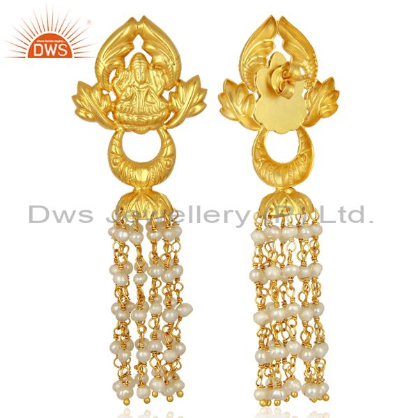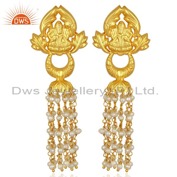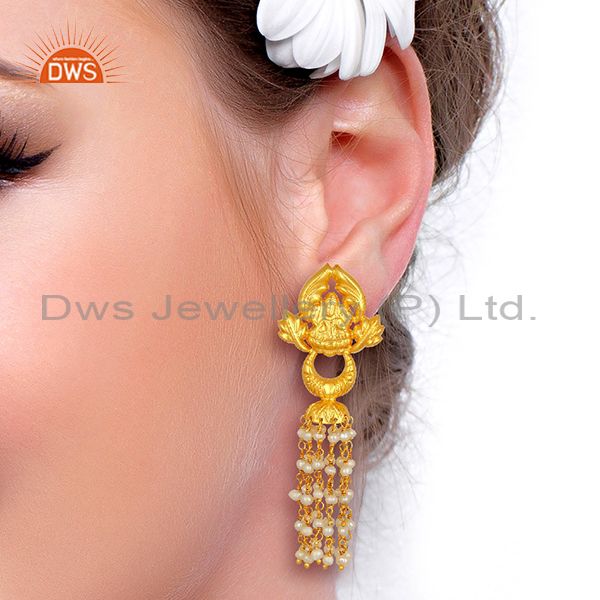Pearl Temple 18K Yellow Gold Plated 925 Sterling Silver Earrings Jewelry