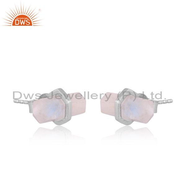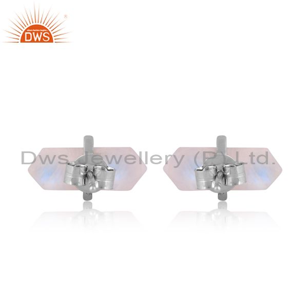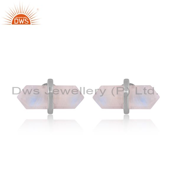 Pencil Cut Rainbow Moon Stone Fine 925 Sterling Silver Ring