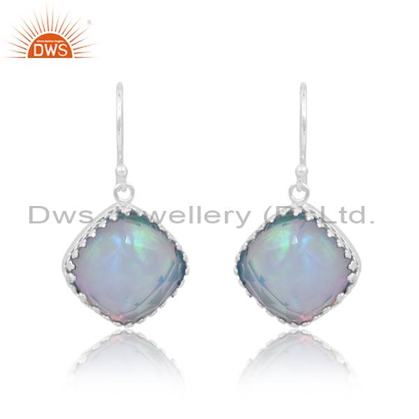 Perfect Cushion Cut Aurora Opal Sky Earrings For Women