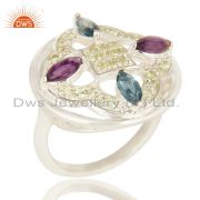 Peridot / Blue Topaz And Amethyst Gemstone Earrings Made In 925 Sterling Silver