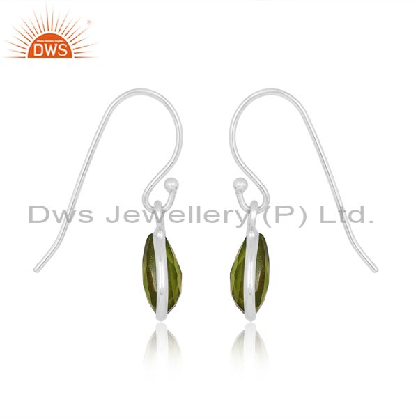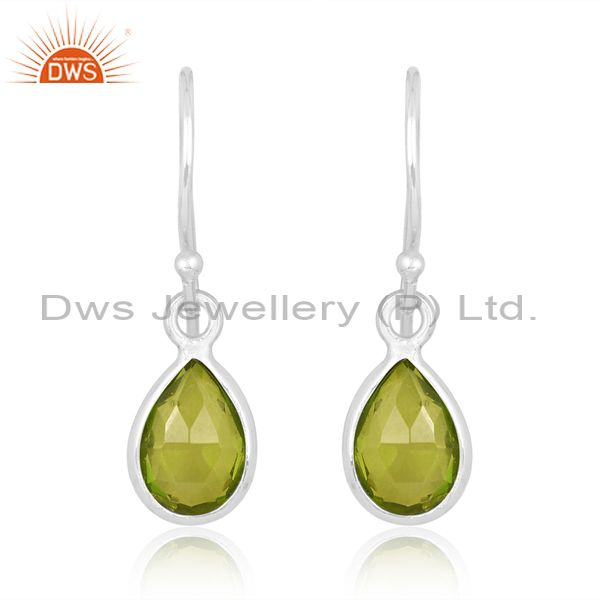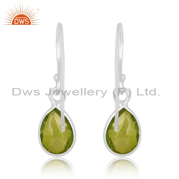 Peridot Quartz Briolette On White Sterling Silver Earring