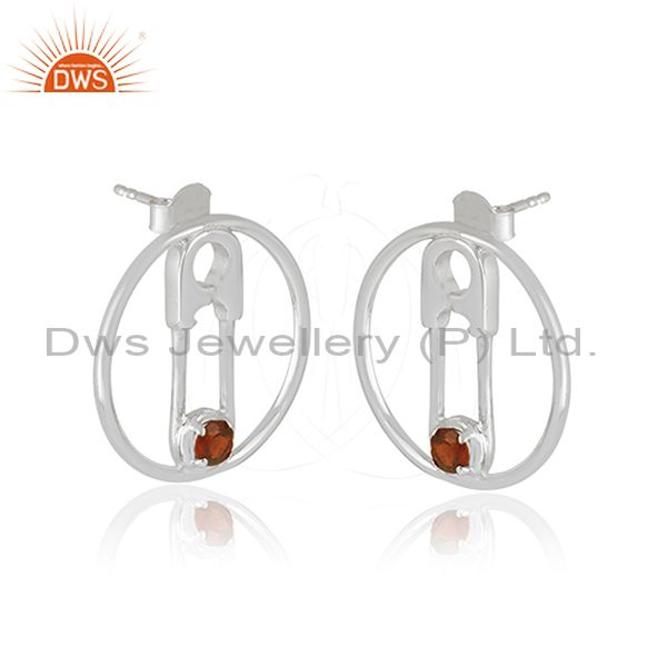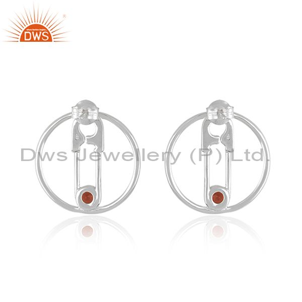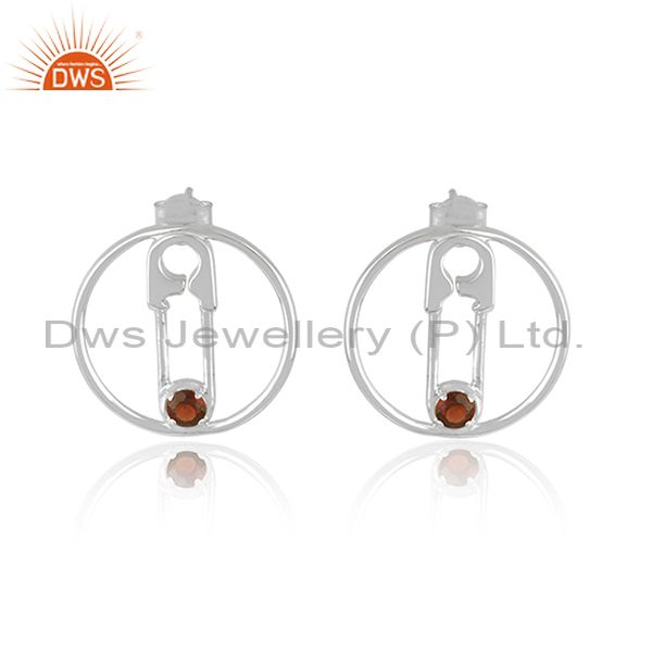 Pin Design Custom Made 925 Sterling Fine Silver Garnet Gemstone Earrings