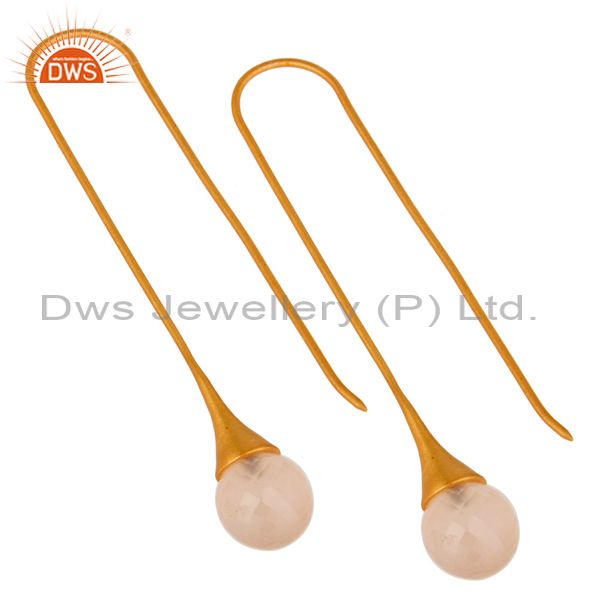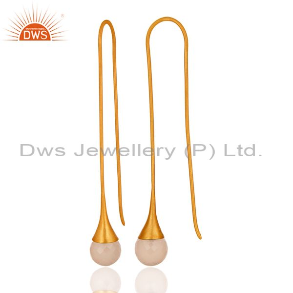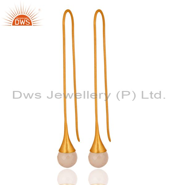 Pink Chalcedony Briolette Sterling Silver Long Dangle Earrings - Gold Plated