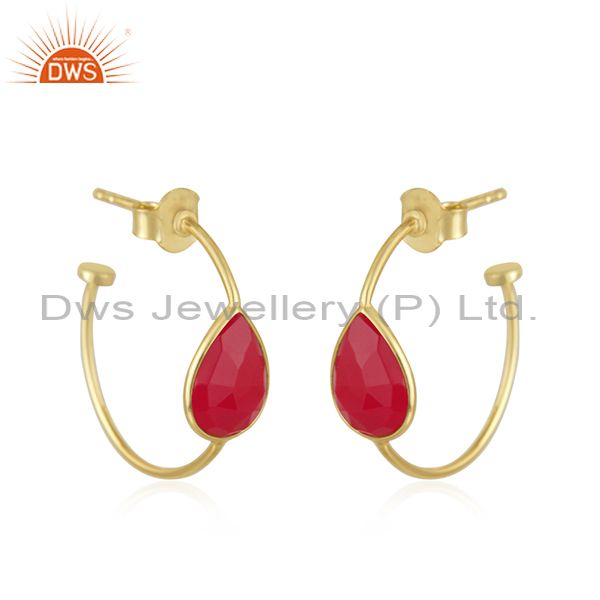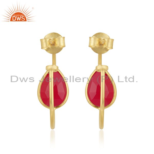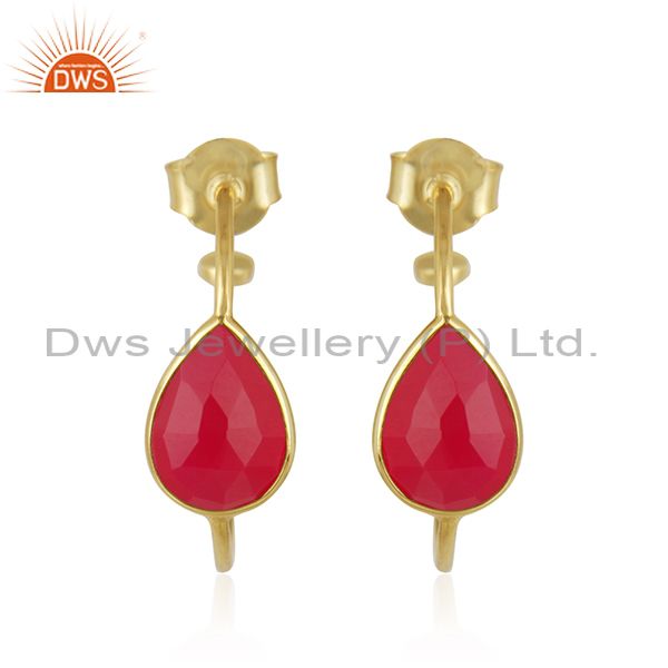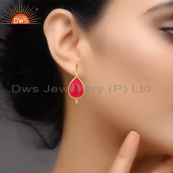 Pink Chalcedony Gemstone 18k Gold Plated 925 Silver Earrings Jewelry