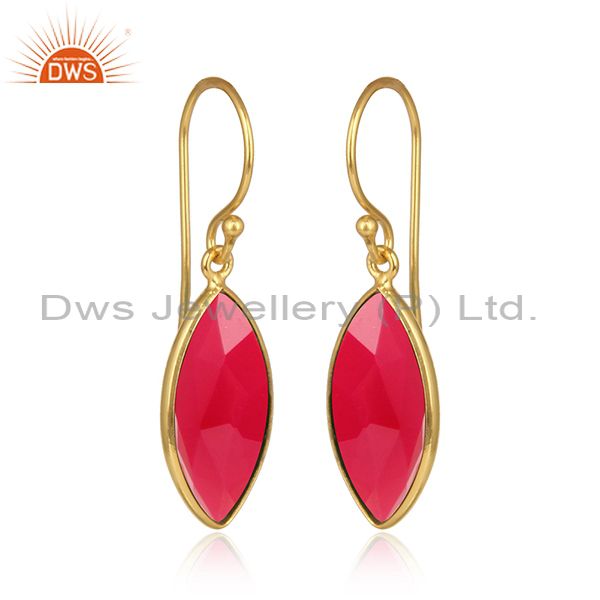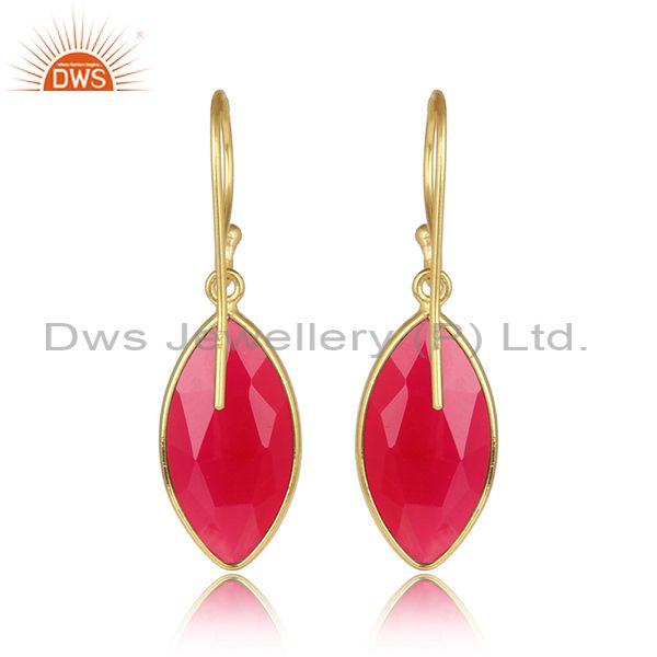 Pink Chalcedony Gemstone Handmade Gold Plated Silver Earrings
