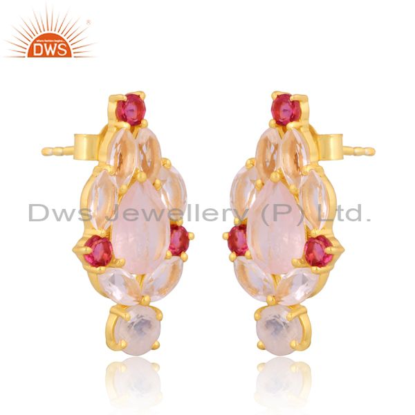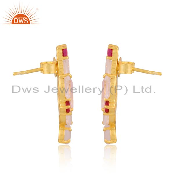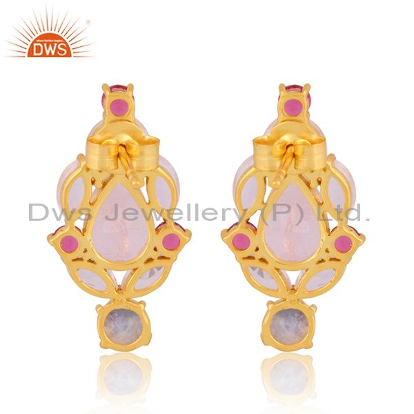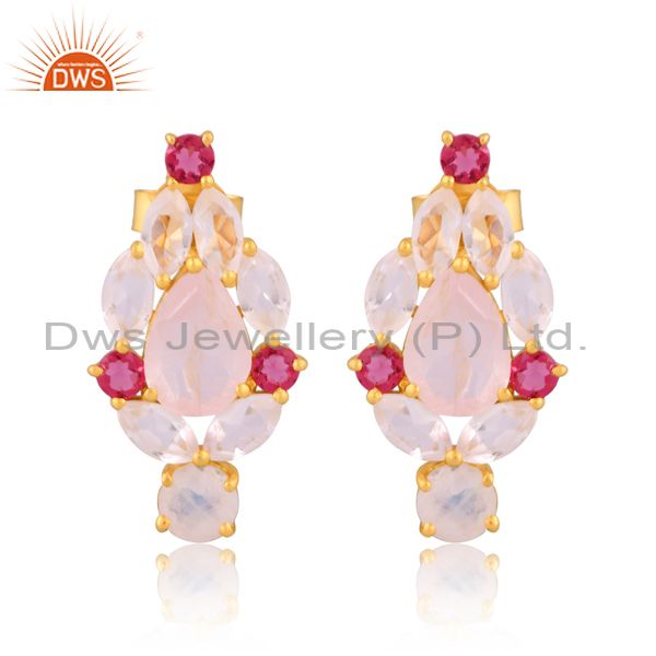 Pink Corundum And Rose Quartz Set Gold On Silver Earrings