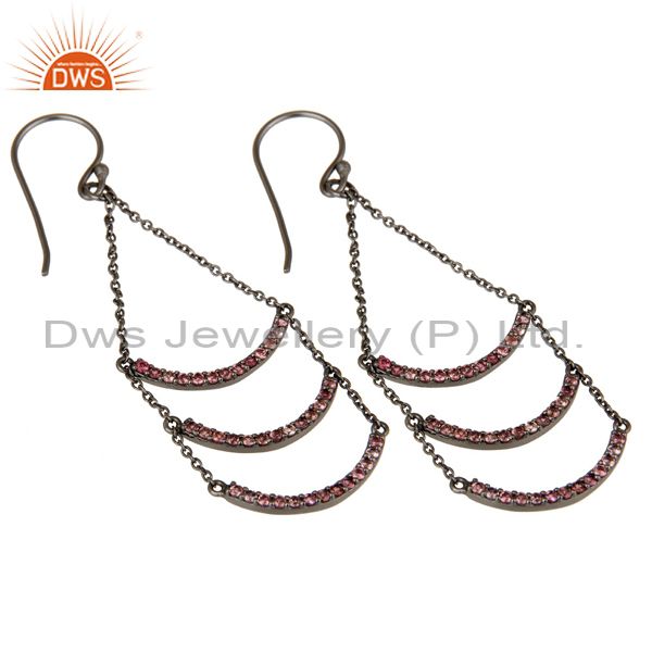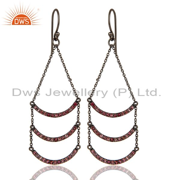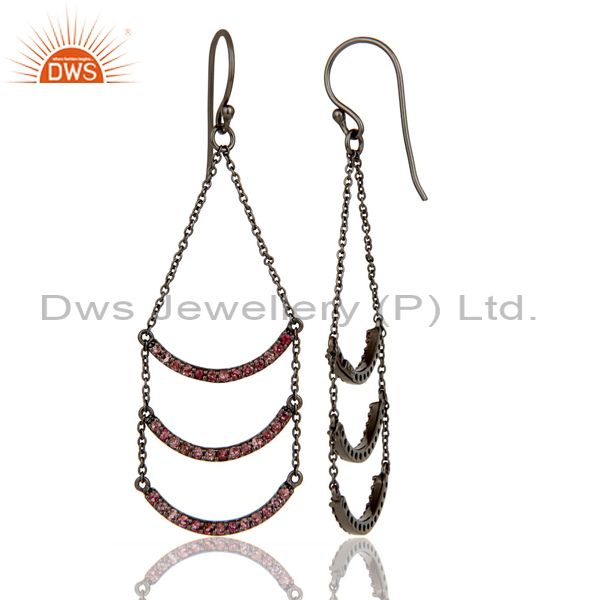 Pink Tourmaline Lotus Dangler Earring Oxidized 925 Sterling Silver Earring