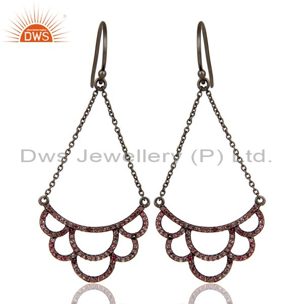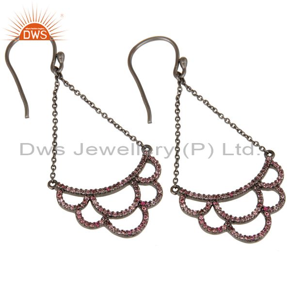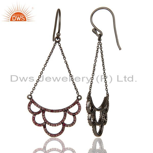 Pink Tourmaline Lotus Dangler Earring Oxidized Sterling Silver Earring
