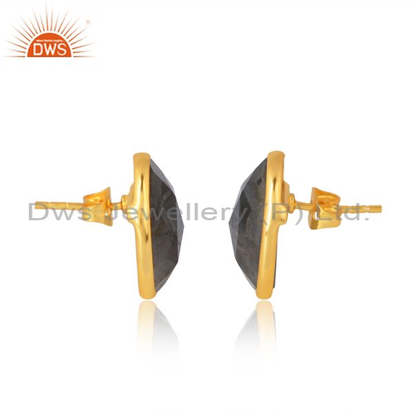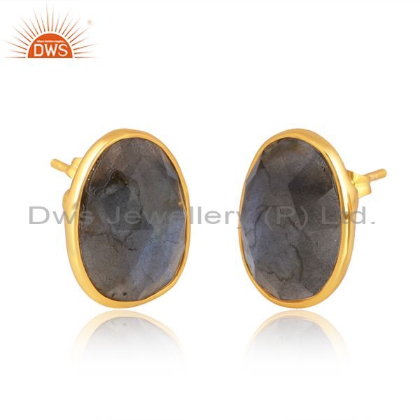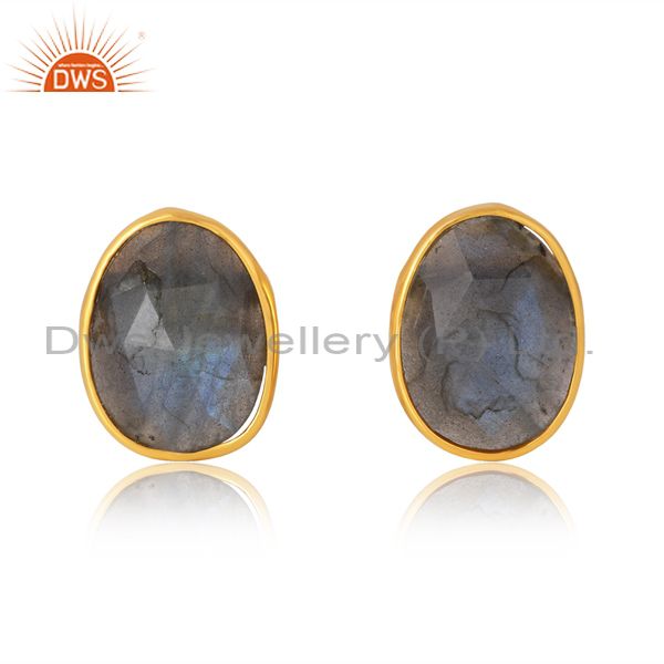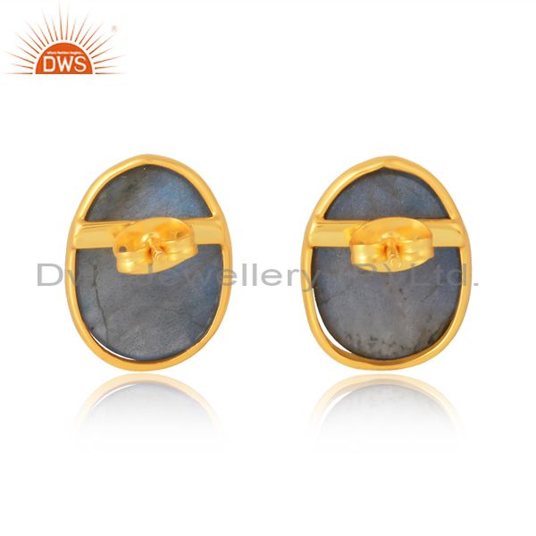 Plain And Grand Silver Stud With Labradorite Unshape Stone