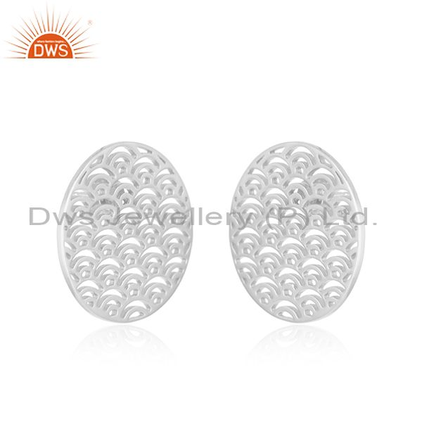 Plain Sterling Fine Silver Filigree Girls Stud Earrings Manufacturer