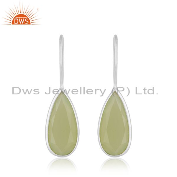 Prehnite Chalcedony Gemstone Fine Sterling Silver Drop Earrings Manufacturer