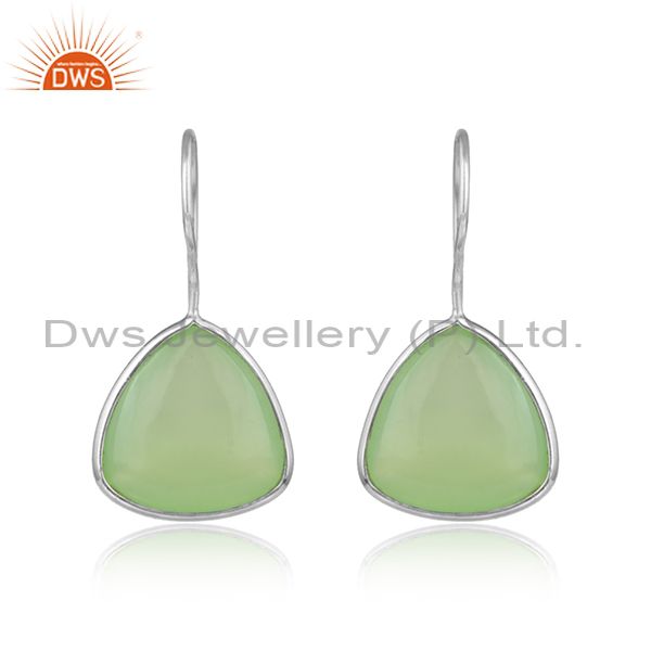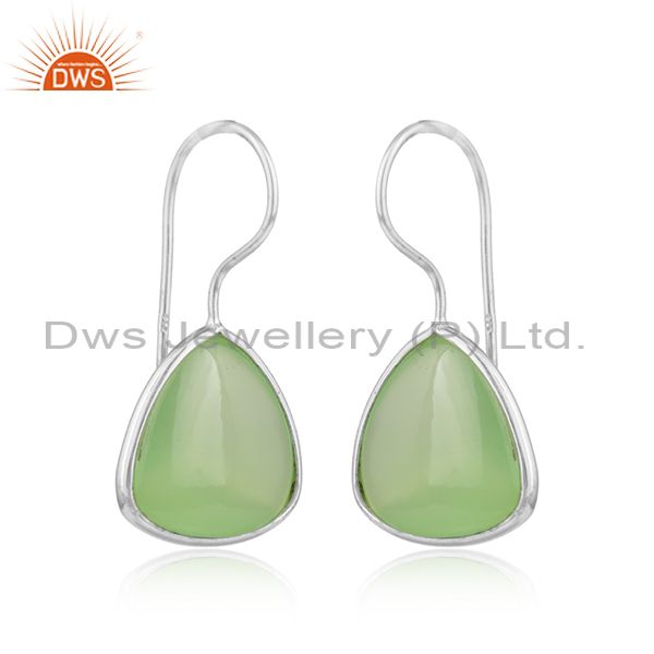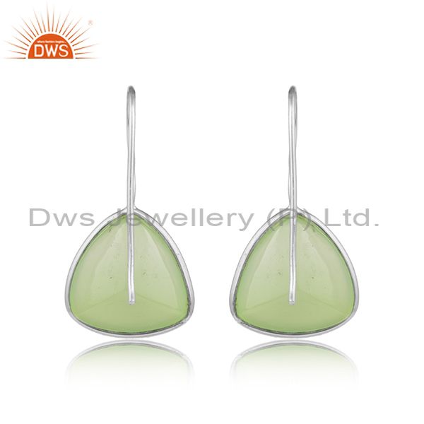 Prehnite Chalcedony Gemstone Fine Streling Silver Hook Earrings
