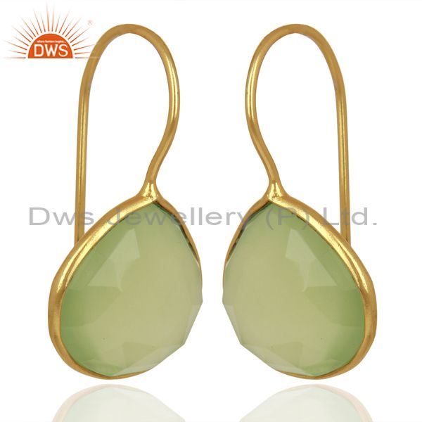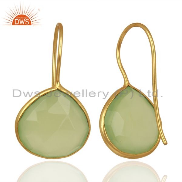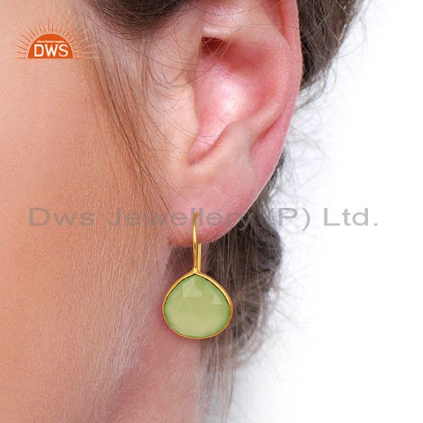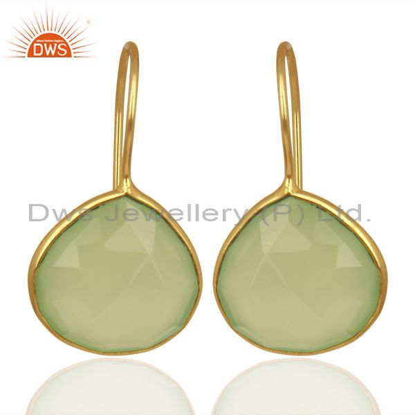 Prehnite Chalcedony Heart Shape 92.5 Sterling Silver Gold Plated Drop Earring