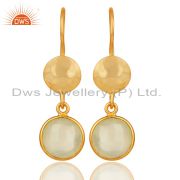 Prehnite Chalcedony Round Faceted Bezel Set 925 Sterling Silver Drop Earring