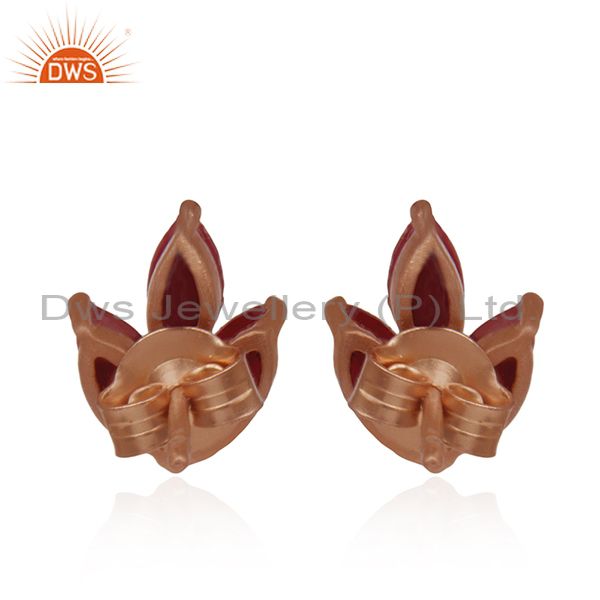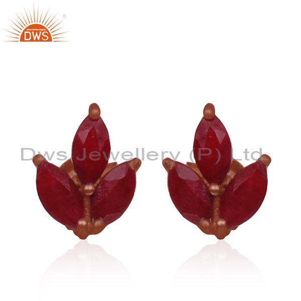 Prong Set Ruby Corundum Gemstone Rose Gold Plated 925 Silver Stud Earrings