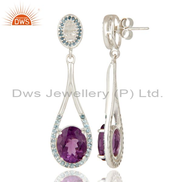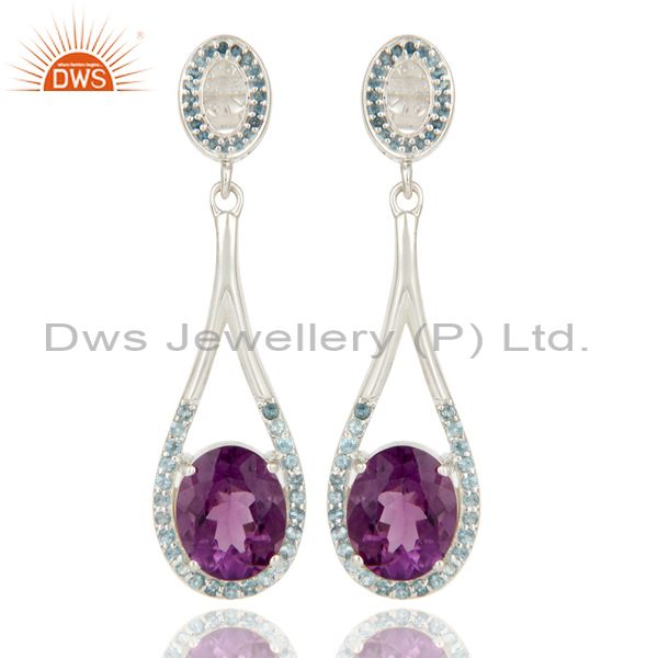 Purple Amethyst And Blue Topaz 925 Sterling Silver Gemstone Dangle Earrings