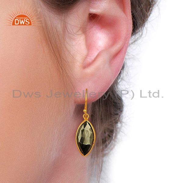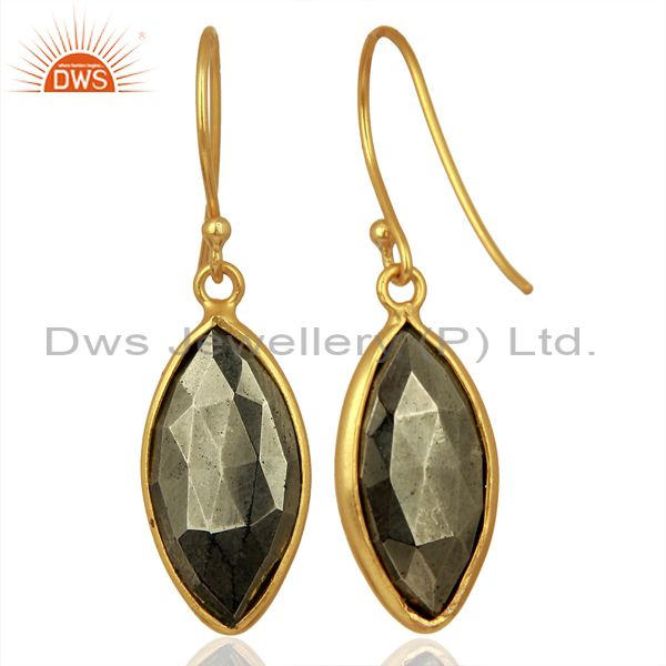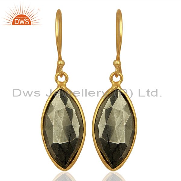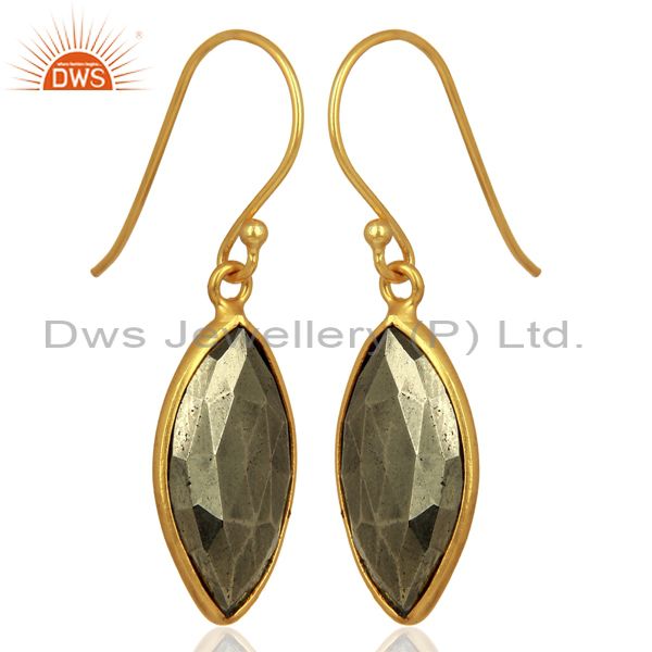 Pyrite Gemstone Bezel Set Sterling 925 Silver 18K Gold Plated Dangle Earrings
