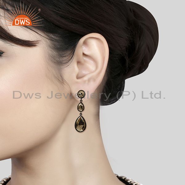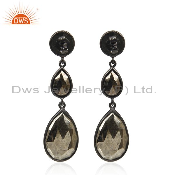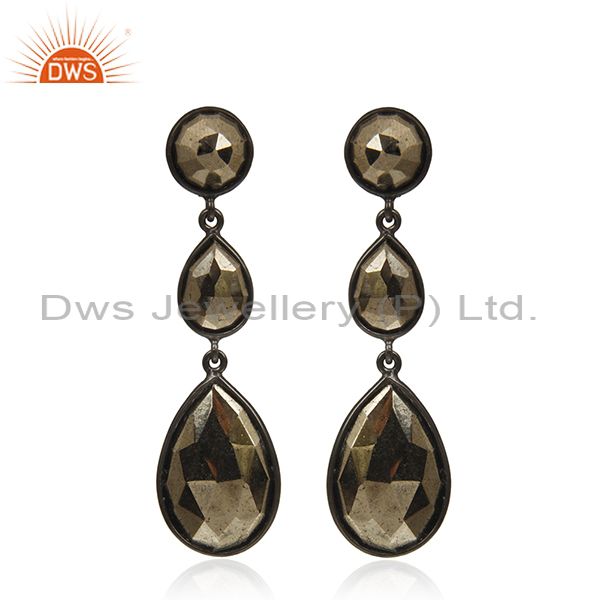 Pyrite Gemstone Black Rhodium Plated 925 Silver Earring Wholesale