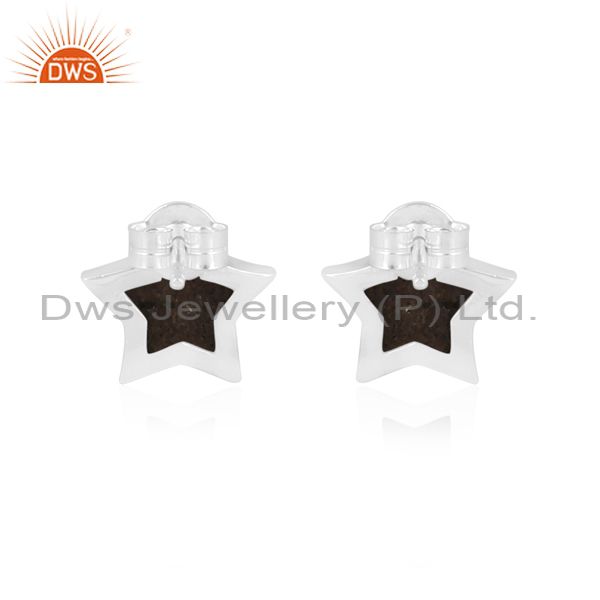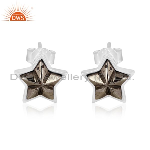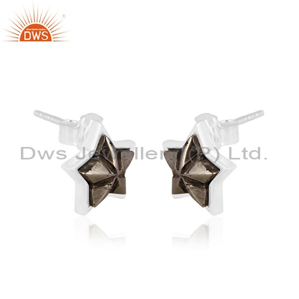 Pyrite set fine 925 sterling silver star shaped earrings
