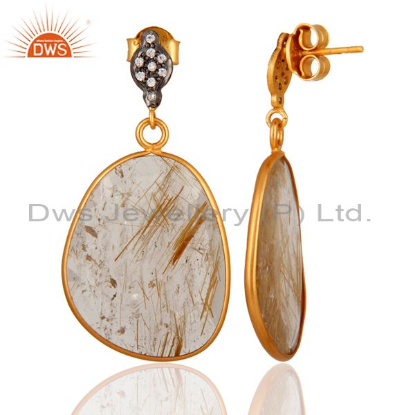 Quality Gemstone Golden Rutile Quartz Cz Studded Earring Made In Sterling Silver