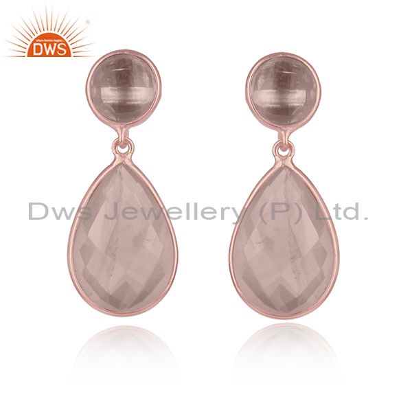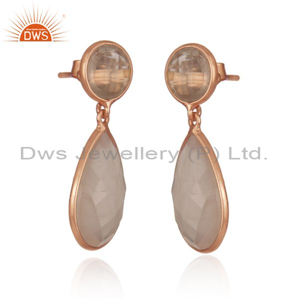 Quartz Gemstone Rose Gold Plated Sterling Silver Gemstone Earrings