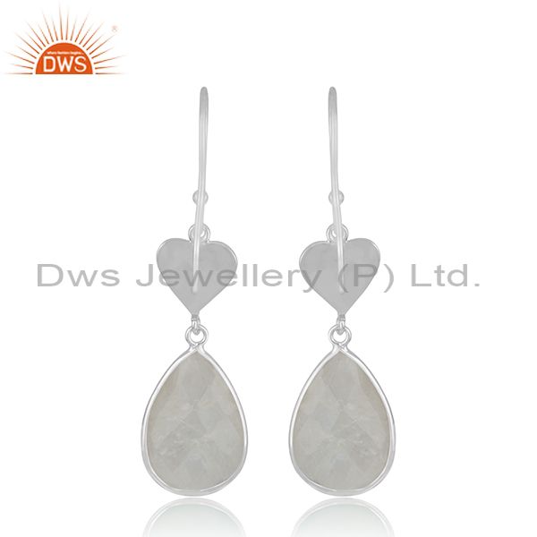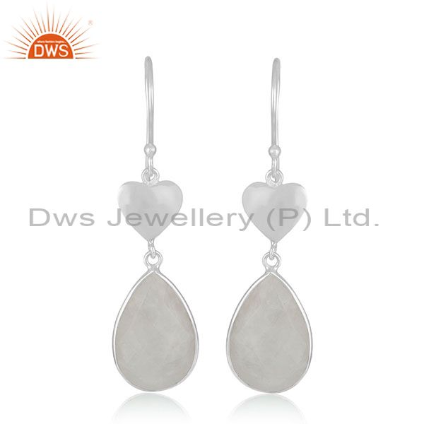 Raibnow Moonstone Sterling SIlver Heart Earrings Jewelry Manufacturer India