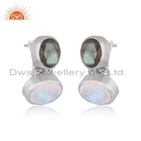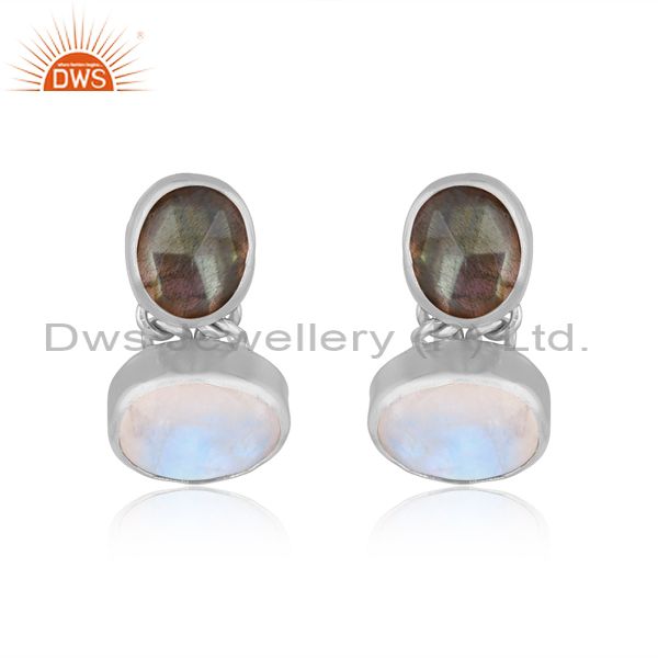 Rainbow Moon Stone And Labradorite Set Fine Brass Earrings