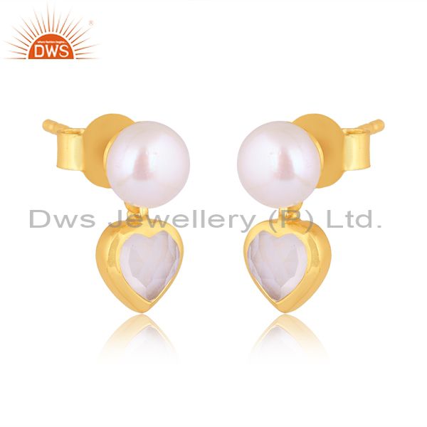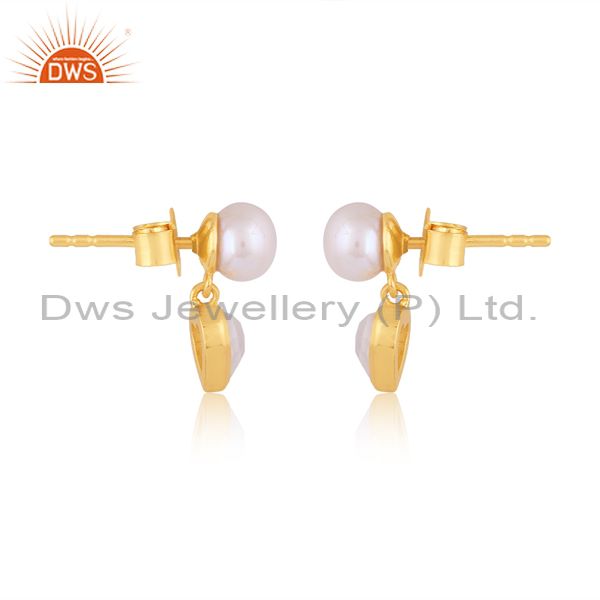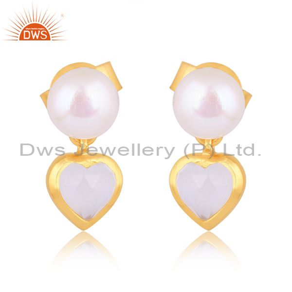 Rainbow Moon Stone And Pearl Set 18K Gold On Silver Earrings
