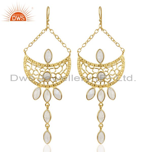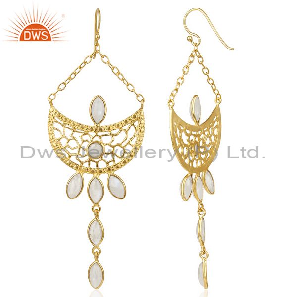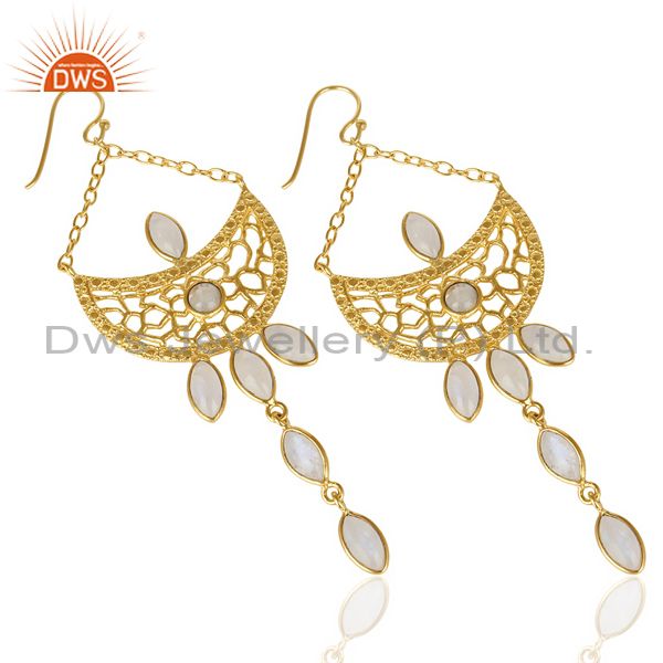 Rainbow Moon Stone Long Filigreen 14K Gold Plated Fashion Earring