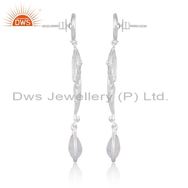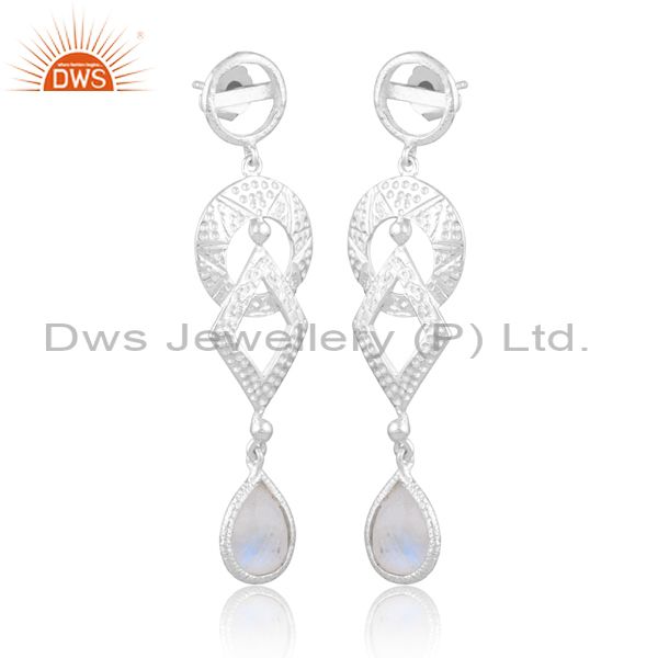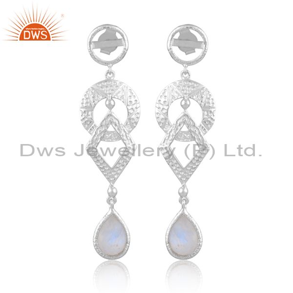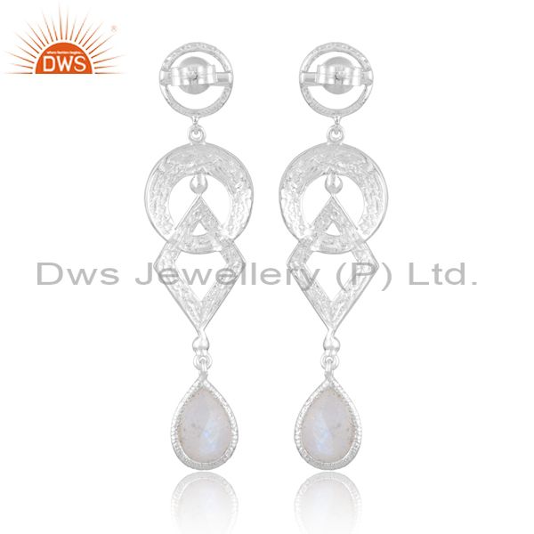 Rainbow Moon Stone Set Fine 925 Silver Designer Earrings