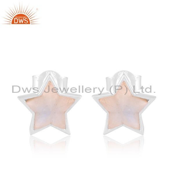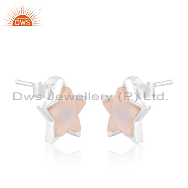 Rainbow Moon Stone Set Fine Sterling Silver Star Earrings