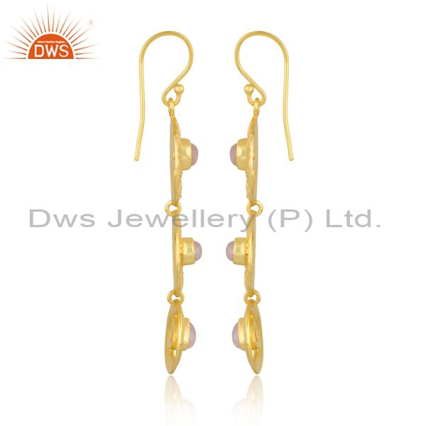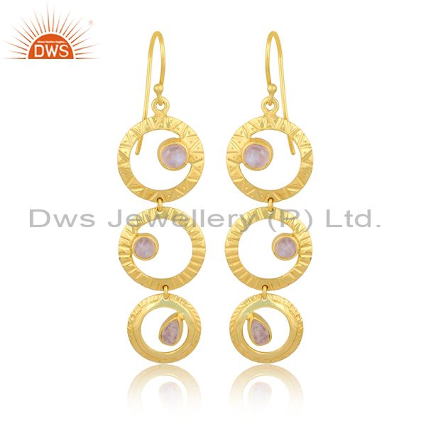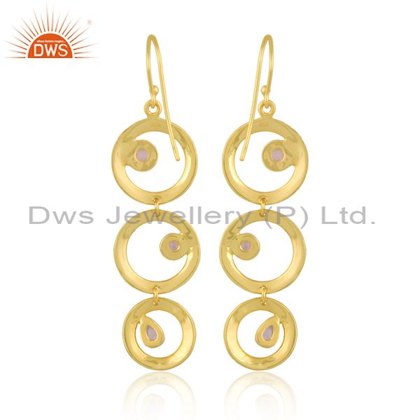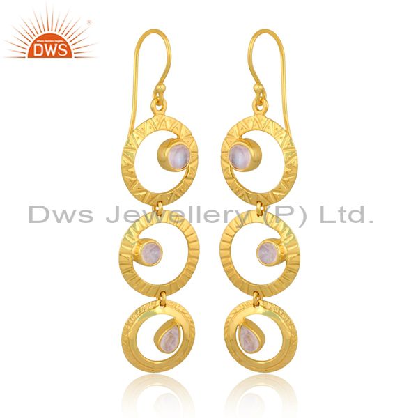 Rainbow Moon Stone Set Gold On 925 Silver Dangle Earrings