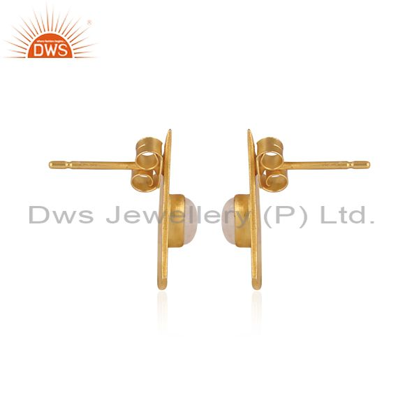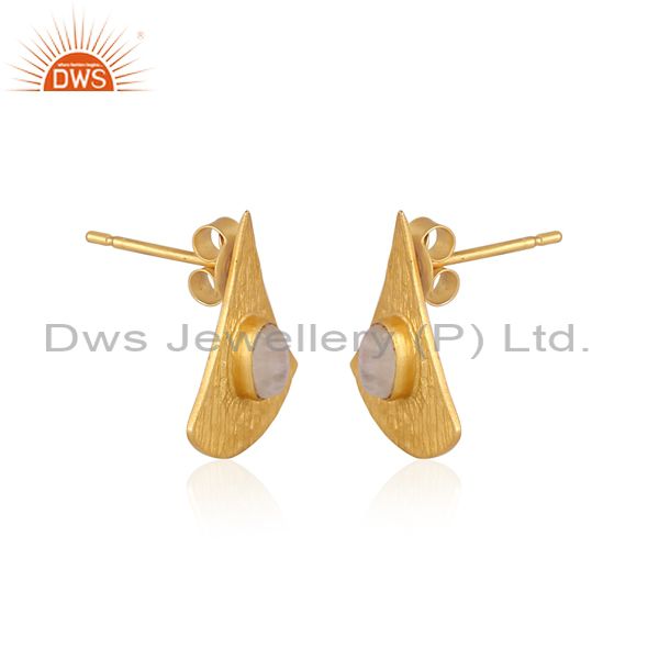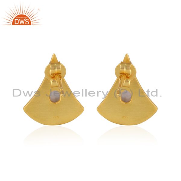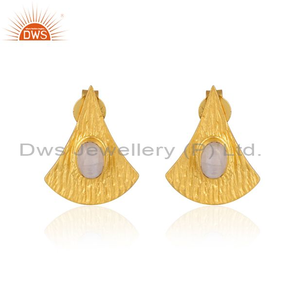 Rainbow Moon Stone Set Gold On Silver Bell Shaped Earrings