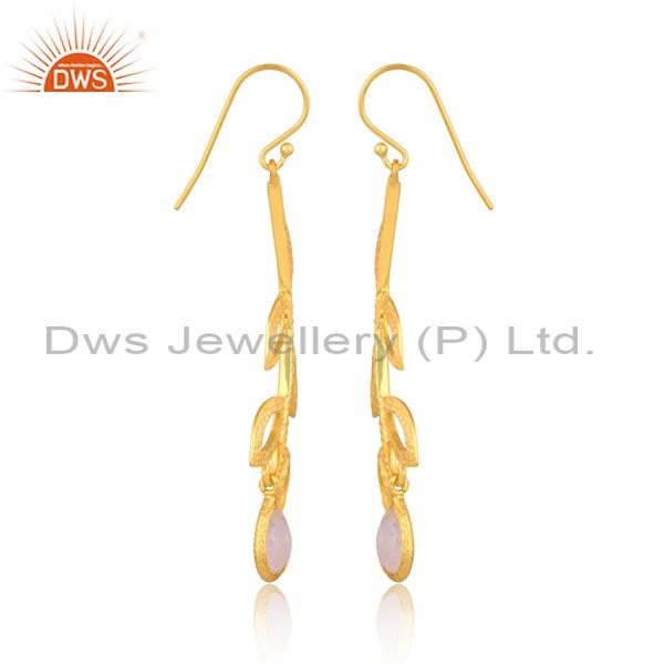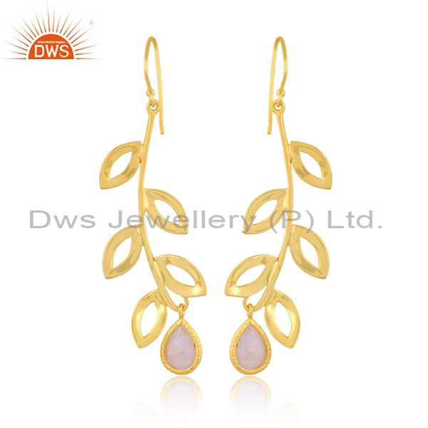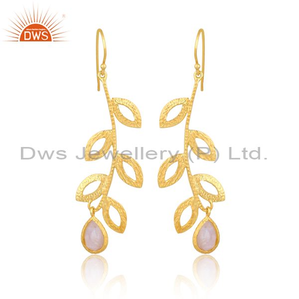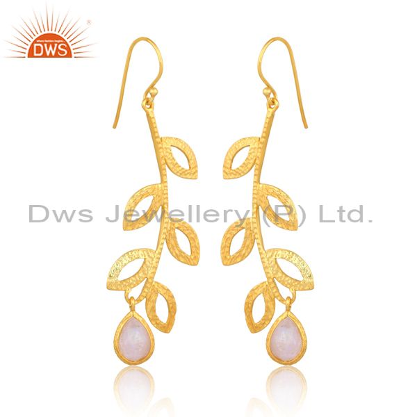 Rainbow Moon Stone Set Gold On Silver Floral Design Earrings