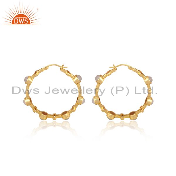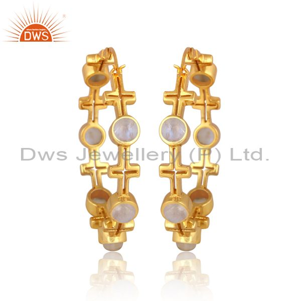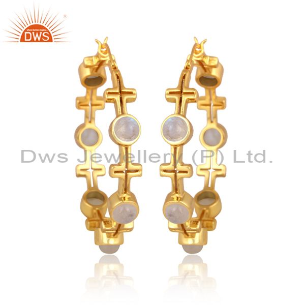 Rainbow moon stone set gold on sterling silver hoop earrings
