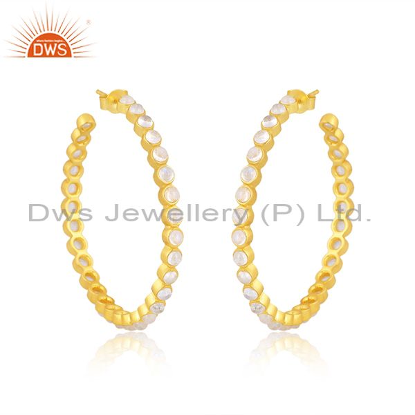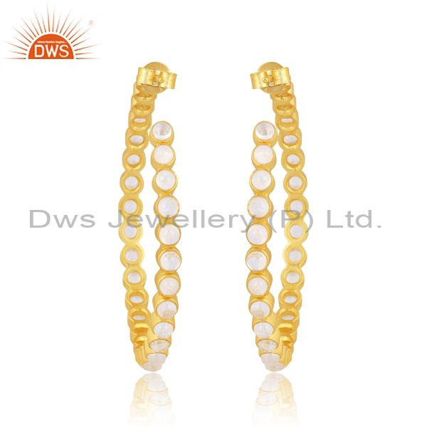 Rainbow Moon Stone Set Gold Silver Round Hoop Earring