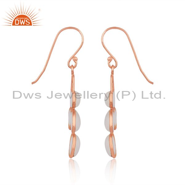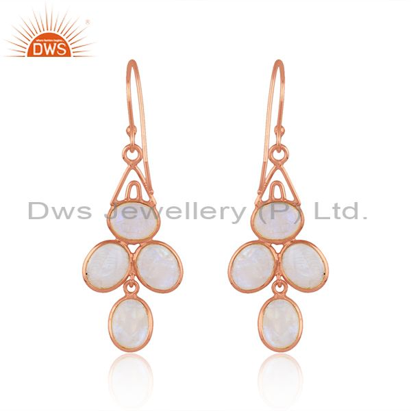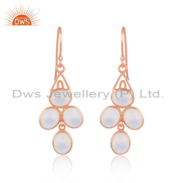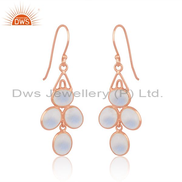 Rainbow Moon Stone Set Rose Gold On Silver Classic Earrings