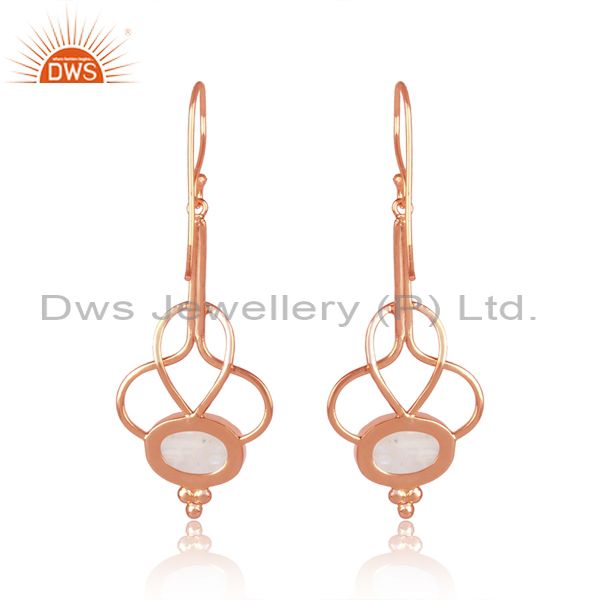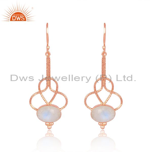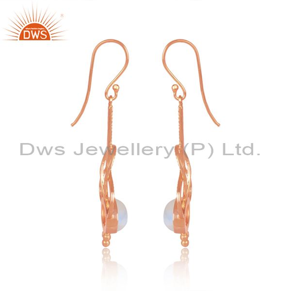 Rainbow Moon Stone Set Rose Gold On Silver Designer Earrings