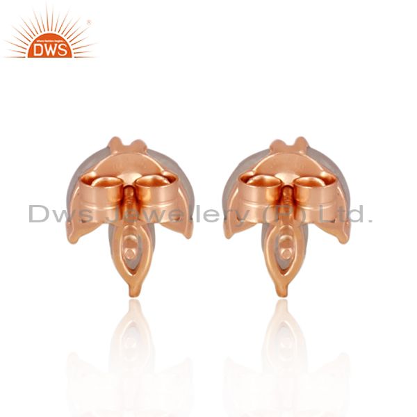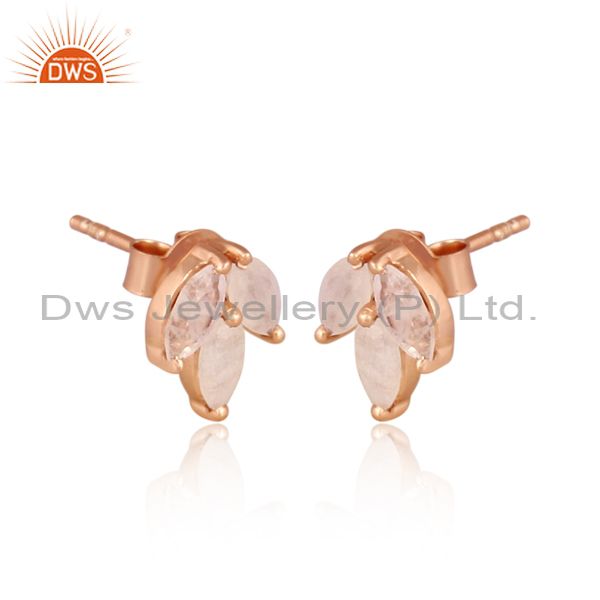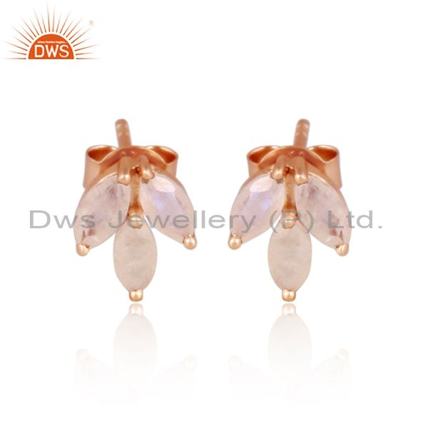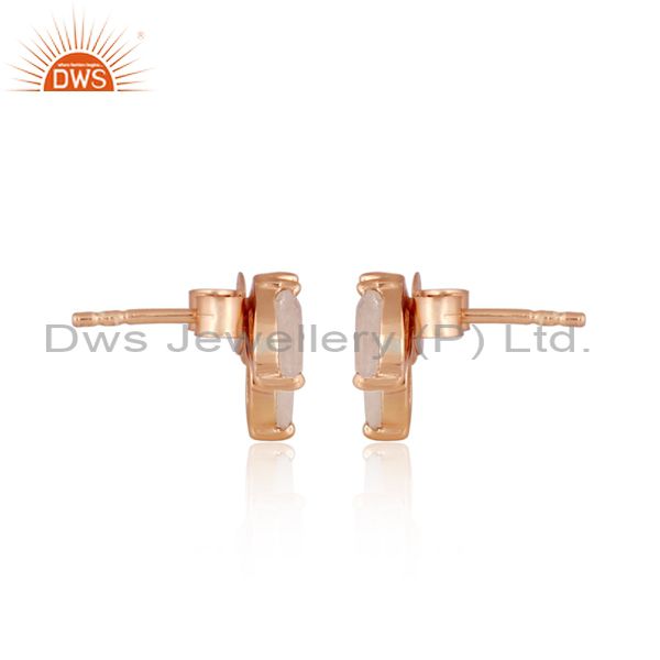 Rainbow Moon Stone Set Rose Gold On Silver Petal Earrings